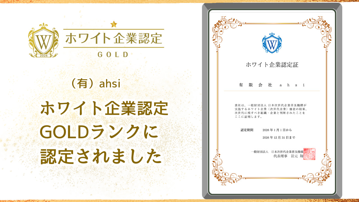 ★この度、当社は【ホワイト企業認定〈ゴールドランク〉】を取得しました🏅