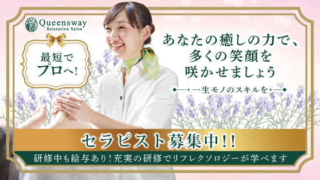 ・メインブランド「英国式リフレクソロジーサロン Queensway」のセラピストとして活躍 リフレクソロジー: 足や手を中心に、反射区を刺激し全身の疲れを癒します。 首、肩、ヘッドリフレなど、お客様の気になる部位に合わせたボディケアを提供します。 お客様への施術業務以外にも、バックヤード業務や受付業務など、店舗運営が円滑になるよう多岐にわたる業務にも携わります。 お客様が快適に過ごせる環境づくりも、セラピストの大切な役割です。 ※雇用期間の定めなし ※従事すべき業務の変更:なし ※就業場所の変更の範囲:基本的に変更なしだが、転居を伴わない店舗異動の可能性はあり