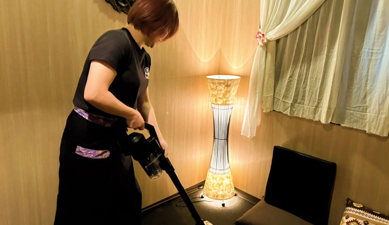各部屋のお掃除と備品の補充などを行い、お客様の来店に備えます。
