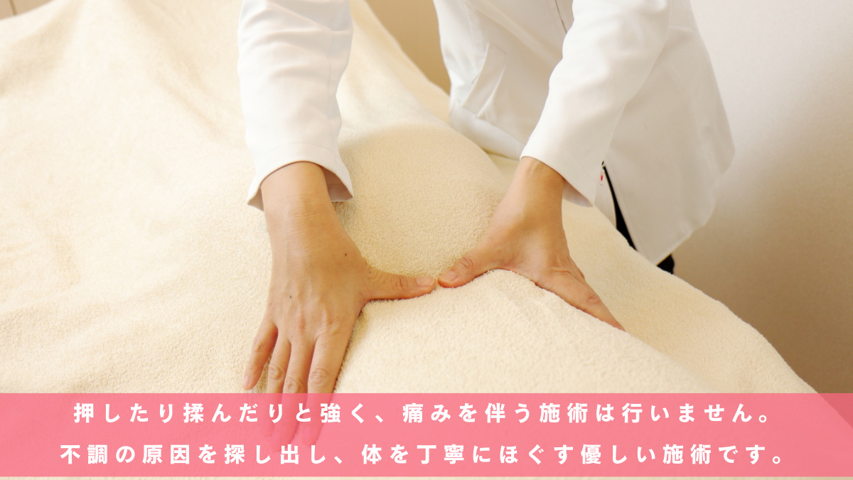 さする・ゆするといった体に負担のかからない施術 で、お客様の不調に寄り添いながら、