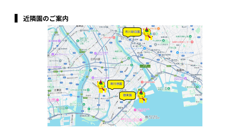 - 認可保育園での保育業務全般をお任せいたします。 本部、姉妹園のサポート体制も充実◎ 私たちが目指すのは、 「のびのびと過ごし、生き生きと 自らの力を発揮できる猫実っ子」を育てること。 一人ひとりの個性を大切にし、 心に寄り添い、未来へとつなぐ保育を。 子どもたちが安心して挑戦できる環境を整え、 その小さな一歩に本気で寄り添える場所が猫実園です。
