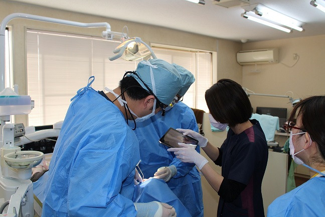 歯科一般の治療、予防歯科および歯周病の治療、インプラントを含めた口腔外科、小児歯科、訪問診療など、あらゆる分野を手掛けております。常勤の歯科衛生士を3人、非常勤歯科衛生士1人おいており、歯科衛生士によるプロフェッシオナルクリーニングには定評があります。衛生士さんは自分の力を思う存分発揮できます。副院長も外科の認定医として、インプラントや自費の治療を頑張っております。若い力を注入しながら、やっております。
