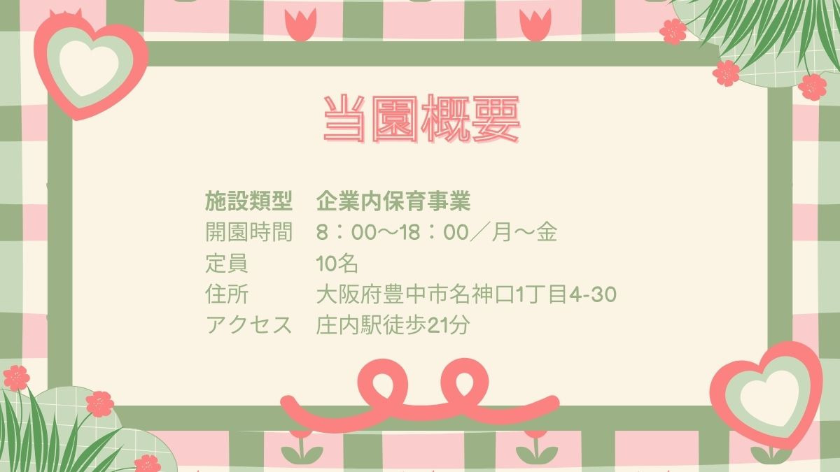 【豊中市名神口】企業内保育園にて保育士(正社員)募集!小規模園で一人ひとりと向き合った保育◎【産休・育休取得実績あり/平日のみOK/賞与あり】/ YN1
