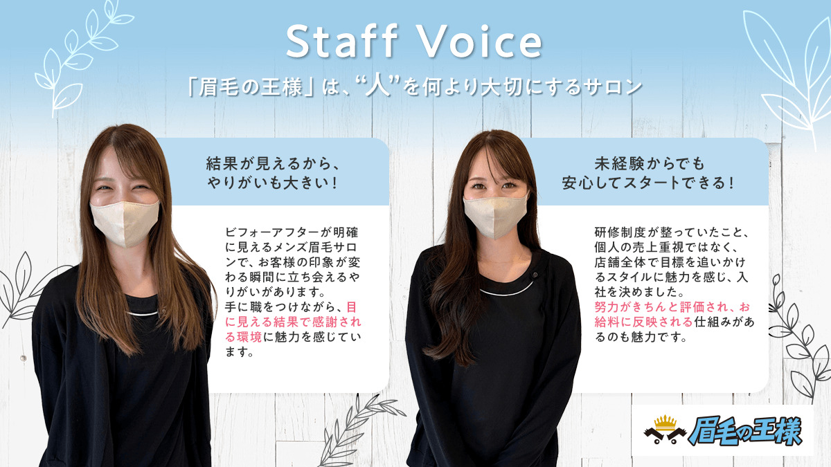 - 職員の声1日の流れ未経験可独立・開業支援ありブランク可駅近(5分以内)社会保険完備交通費支給