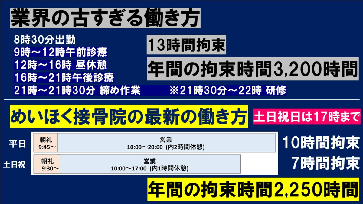 - 職場の環境職員の声1日の流れ採用担当メッセージ未経験可独立・開業支援あり整骨院・接骨院社会保険完備週休2日残業ほぼなし