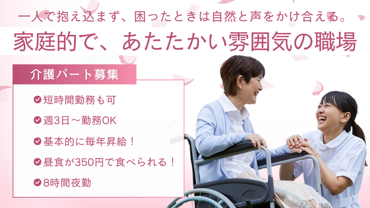 特別養護老人ホームなごみの里は、 「安心・安全・家庭的」をモットーに、入居者さま一人ひとりに寄り添ったケアを行う 定員180名・ユニット型の特別養護老人ホームです。 1ユニット10名、全室個室のため、 流れ作業ではなく、入居者さまと丁寧に向き合う介護ができます。 ──◆主な業務内容◆── 特別養護老人ホームにおける介護業務全般をお任せします。 ・食事・排泄・入浴などの身体介護 ・日常生活における見守り・声かけ・生活支援 ・レクリエーションや趣味活動のサポート ・自立支援を目的とした生活リハビリ・生活訓練の支援 ・外出時の付き添い・サポート ・介護記録の作成・申し送り ・看護師・生活相談員・ケアマネジャーなど他職種との連携 ・シーツ交換、居室の簡単な清掃 など ──◆施設・働き方の特徴◆── ✔️ユニット型特養(本館10ユニット/別館8ユニット) ✔️1ユニット10名の少人数ケアで、入居者さまの生活リズムを大切にできます ✔️本館は「鳥の名前」、別館は「花の名前」のユニットで、温かみのある雰囲気 ✔️大規模施設ならではの職員体制の厚さ・相談しやすさも魅力です ✔️ブランクのある方も安心 ✔️先輩職員が丁寧にフォローしながら、業務を一つずつお教えします ──◆1日の流れ(一例)◆── 下記、各時間帯でフルで働いた場合の例になります。 🌅 早番 6:30 出社/申し送り・起床介助・配膳準備 7:50 食事介助・服薬介助・口腔ケア・排泄介助 9:30 入浴介助・バイタル測定・記録入力 12:00 休憩 13:30 レクリエーション・排泄介助 15:00 おやつ介助・記録入力 15:30 退勤 ☀️日勤 9:00 出勤/申し送り 10:00 水分摂取・排泄介助・配膳準備 12:00 食事介助・服薬介助・後片付け・口腔ケア・排泄介助 13:00 休憩 14:00 記録入力・リネン交換 15:00 おやつ介助・排泄介助 16:00 記録入力 17:00 配膳準備 18:00 退勤 🌆 遅番 12:30 出勤/申し送り 13:00 排泄介助・口腔ケア・レクリエーション 15:00 おやつ介助・記録入力 16:00 休憩 17:00 配膳準備 17:45 食事介助・服薬介助・後片付け 18:30 口腔ケア・排泄介助 19:30 就寝介助・服薬介助 20:30 巡視・申し送り 21:30 退勤 🌙 夜勤 21:30 出勤/申し送り・巡視・トイレ介助 23:00 巡視・排泄介助・記録入力 1:00 休憩・巡視・排泄介助 3:00 巡視・排泄介助・記録入力 5:00 起床介助・排泄介助 6:30 申し送り・退勤