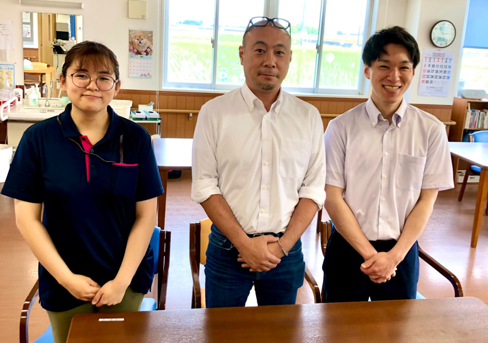 出勤後、夜勤者から利用者様の状況や管理者から当日の来客・イベントなどの前日の引継ぎを行います。
