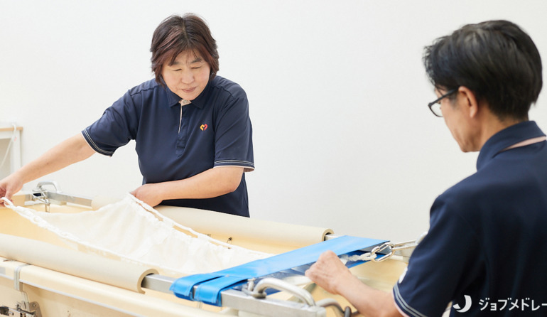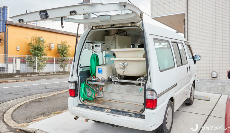 訪問入浴オペレータ業務 看護師を含む3名チーム 訪問件数:平均6件 1件当たりの訪問時間: 機材の搬入搬出を含めて概ね45分 <具体的な業務内容> ・訪問入浴車の運転 ・入浴機材・備品の搬入出 ・入浴補助業務 ――――――――――――――― < 1日の流れ > 8:30 出発 お客様宅へ車で向かいながら 車内でお客様情報や申し送りの確認をします 1件目9:00~9:45 2件目10:00~10:45 3件目11:00~11:45 お昼休憩11:45~12:45 4件目13:00~13:45 5件目14:00~14:45 6件目15:00~15:45 16:00 営業所戻り 使用した物品の補充等や明日の準備 17:30 退勤 「お風呂に入れてあげたいけど、 自分たちでは難しい…」と悩むご家族や、 「気持ちよかった!ありがとう」と 笑顔で伝えてくださるお客様から、 直接感謝の言葉をいただけるお仕事です。 病気療養中の方やご高齢の方など、 **「残された時間を快適に過ごしたい」** と願う方々に寄り添えるやりがいのあるお仕事です -- ・就業場所の変更:法人の定める範囲 ・業務内容の変更:法人の定める範囲 ・※雇用期間の定め:入社1年経過後、無期雇用へ原則更新 ※68歳以上は1年毎の契約更新 (1か月前に申し出がない限り原則更新/更新上限なし)