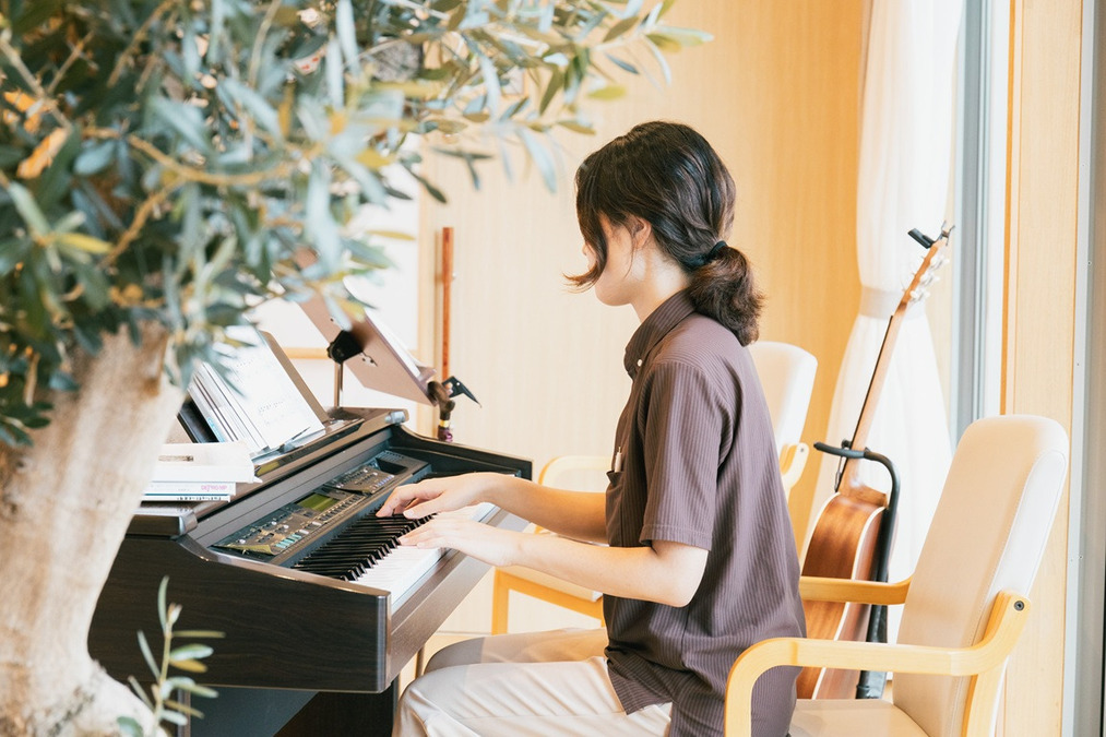 2023年1月にオープンしたばかりの、自然あふれるあたたかな事業所です。音楽と介護を融合した“音楽回想法”を日々のケアに取り入れ、笑顔と歌声が響くにぎやかな毎日。