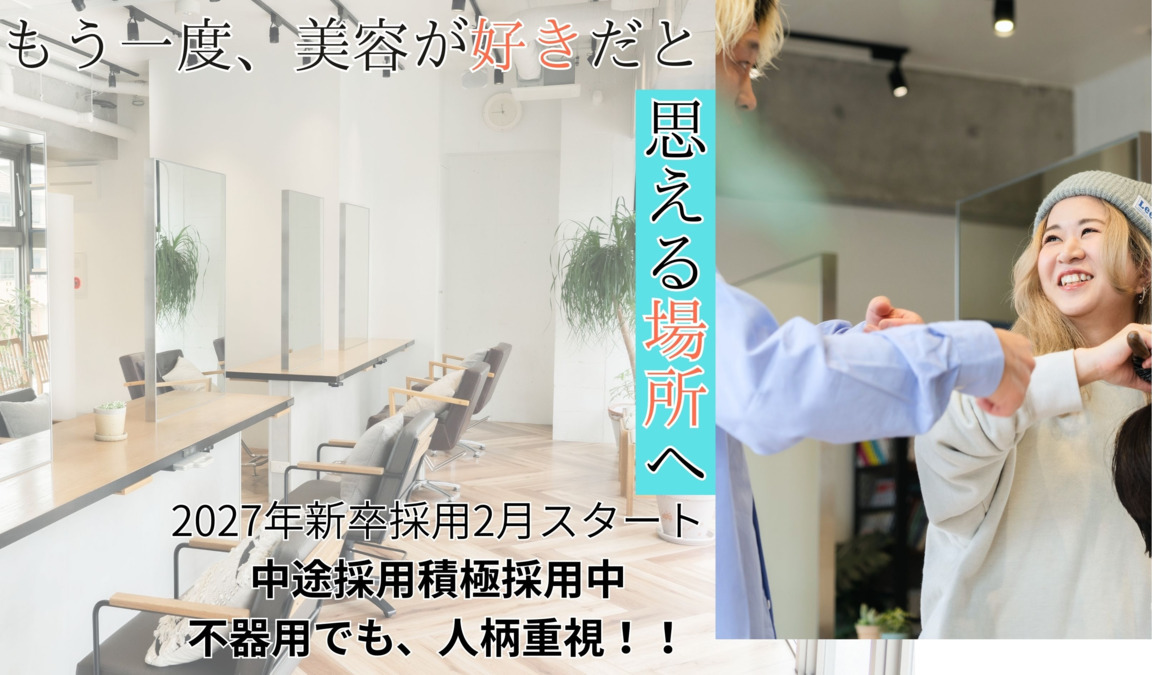 【第2新卒・中途採用歓迎】人柄重視◎少人数制サロンで”愛され美容師”を目指そう!