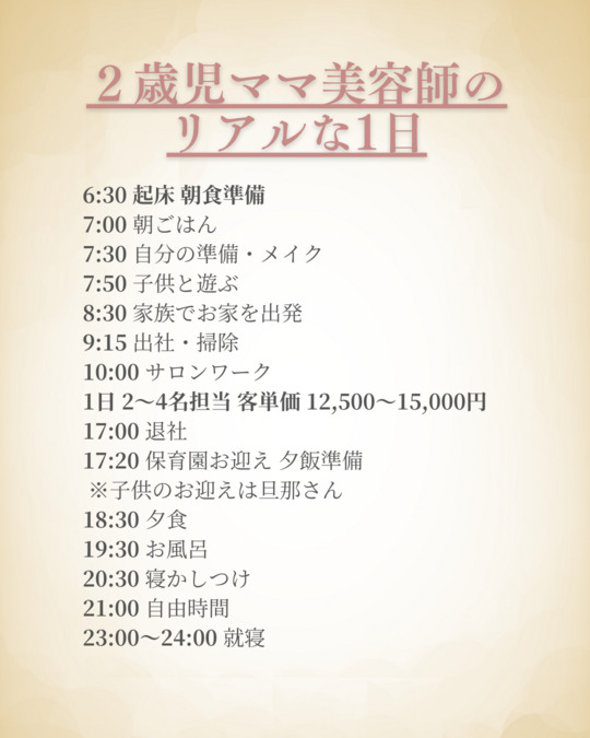 - 多数ノルマをこなす必要はなく、自分らしい美容師ライフスタイルを実現できる職場です。