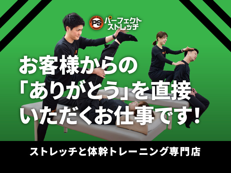 ・パーソナルストレッチの施術 ・体幹トレーニング指導 ・お客様の受付及びご案内のご対応 ・後方業務(オープン・締め作業・片付け・清掃)