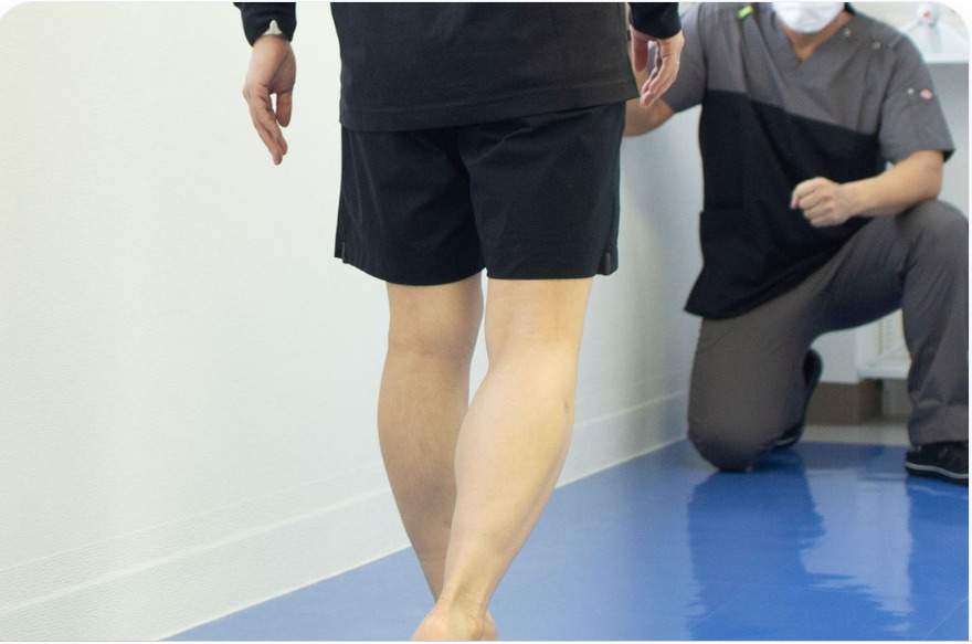医療検査では、荷重下レントゲン(立ったまま撮るレントゲン)、足病の診断、継続中の治療を確認させていただき、日本の足病専門医の指示に基づいて、Posture&GaitAnalysisによる歩容(歩き方)検査、筋肉の検査、関節可動域の検査等を行い、リハビリ計画が策定されます。