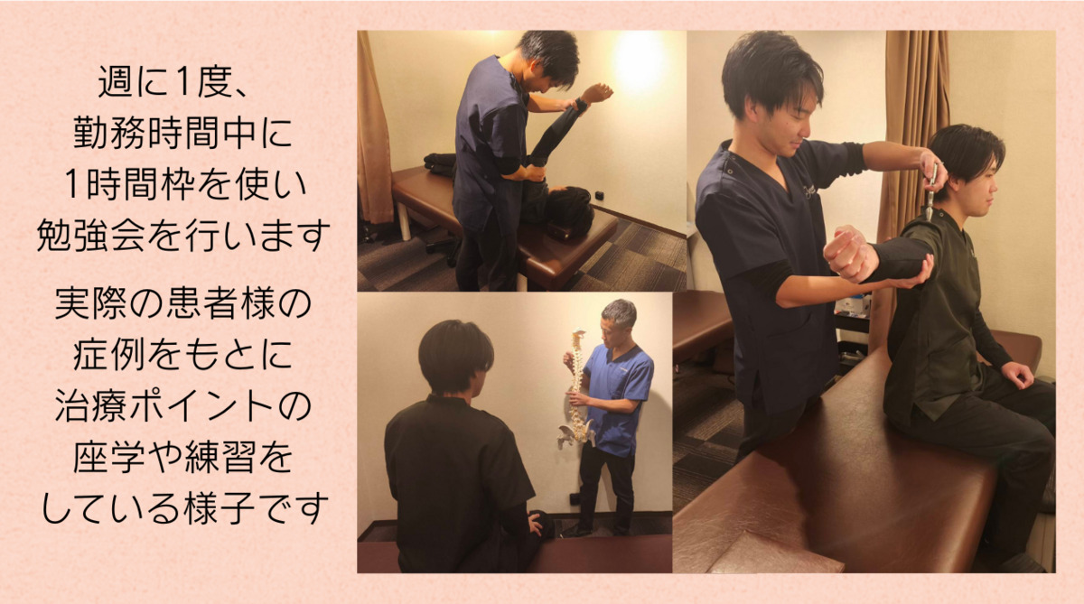 最高の結果を出した時に手に入る『成功体験』があなたを誰よりも早く”一人前の治療家”に成長させてくれると信じているからです。もちろん事前に症状対策を練ったり、先輩や院長が全力であなたの初診をバックアップしたり、ばっちりサポートします。