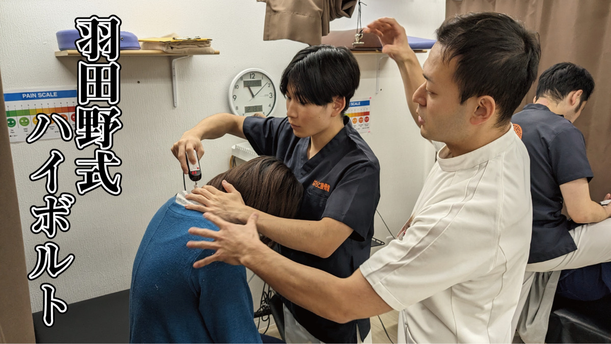 当院では「痛みを取る」ことにコミットしています。全国1000人以上受講している羽田野式ハイボルトは、どこに原因があるかが分かるテクニックとなっているため、診立てを誤る事がありません。つまり、確実に患者さんの痛みを取り除けます。