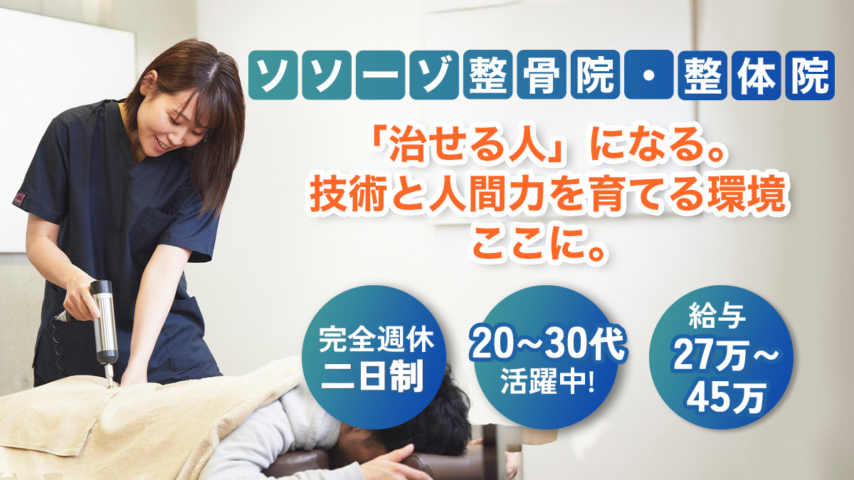 私は新卒で入社し、3年で院長になりました。 患者さんを健康にするスキルはもちろんですが、人としてのスキルも身につきます。 身体の仕組み、構造、作用を理解してどこにどうアプローチをするのかという当たり前のことですが、ものすごく施術に大切なことが身につきます! また、人が生きていくために必要なことや、在り方を学び、人としてのスキルがつきます!
