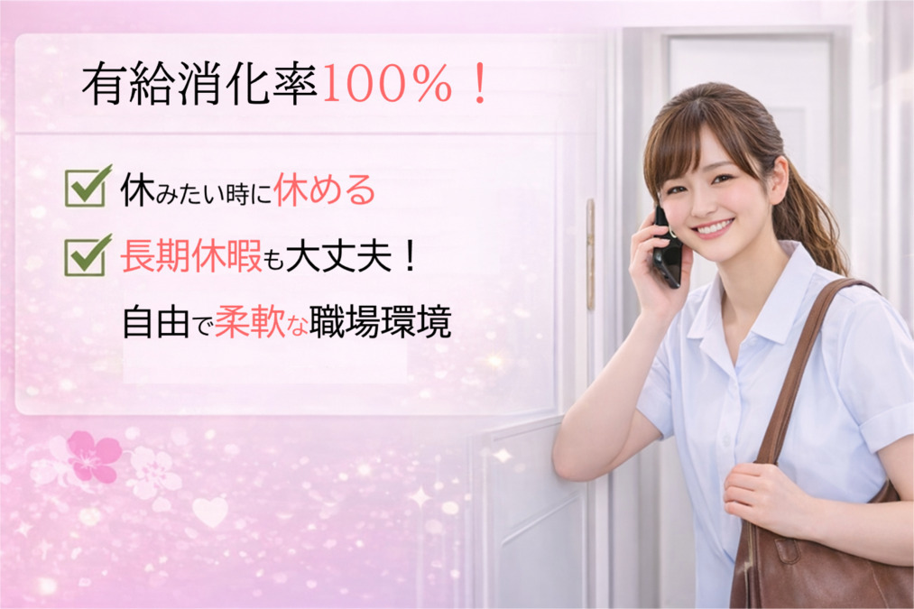 働き方に色んな選択肢がありストレスなく自分のスタイルに合わせて働けるところです。 雇用形態は正社員や業務委託を選択できたり、現場までは直行直帰ができるため効率良く自分のライフスタイルに合わせて仕事ができます。 また、職場といっても基本的に1人での訪問施術になるため人間関係や施術以外の業務で残業が発生することもないので余計なストレスがないのも働きやすい点です。 全員女性の国家資格取得の先生なので、子供事情などの急なお休みが発生した場合でも、信頼できる先生方がフォローして下さるので安心して働くことができます。