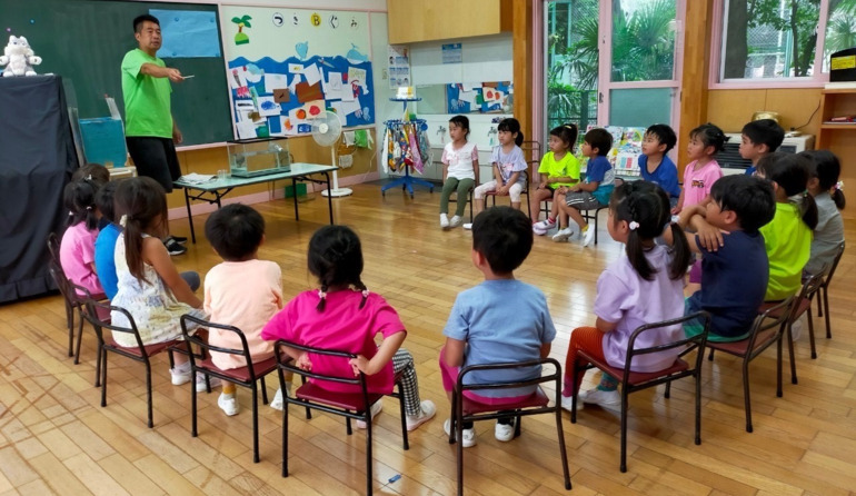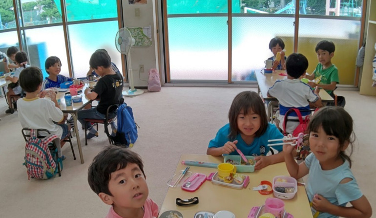 昼食後、自由遊びの把握を行う 自由遊び後3限的活動 紙芝居、絵本どちらかを読み聞かせ 歌唱指導 降園準備