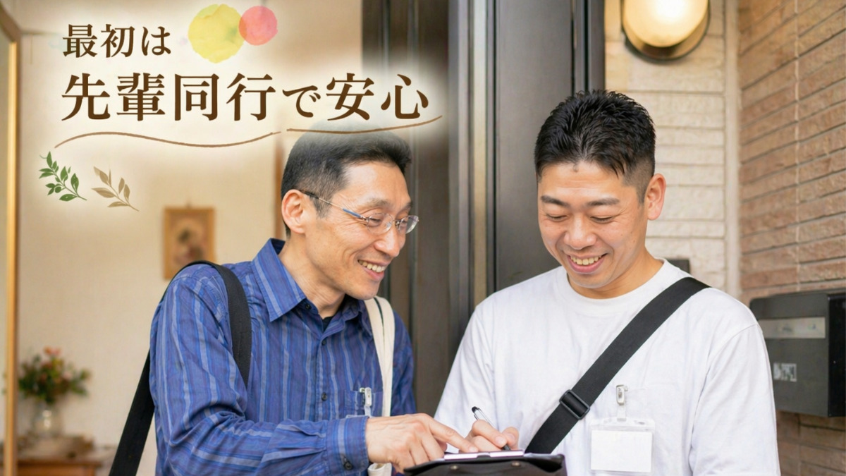引き続き、時間になったら訪問先に向かいます。 訪問中も安心 もし迷ったことがあれば、その場で代表の田村に直通で連絡📱 すぐにアドバイスがもらえるので、一人でも安心して対応できます。 一件目と同じことを繰り返すだけです♪