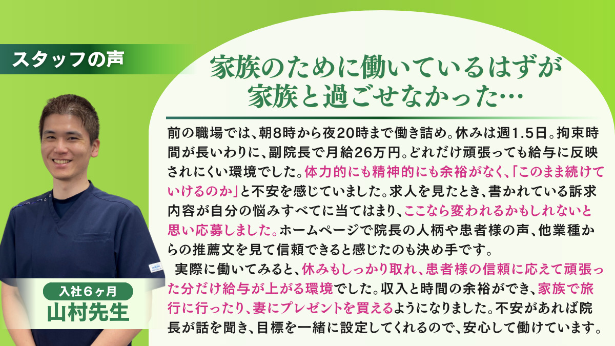 *経営スキルも身に着けることが出来るため将来の開業に活かせます。また本院の副院長や