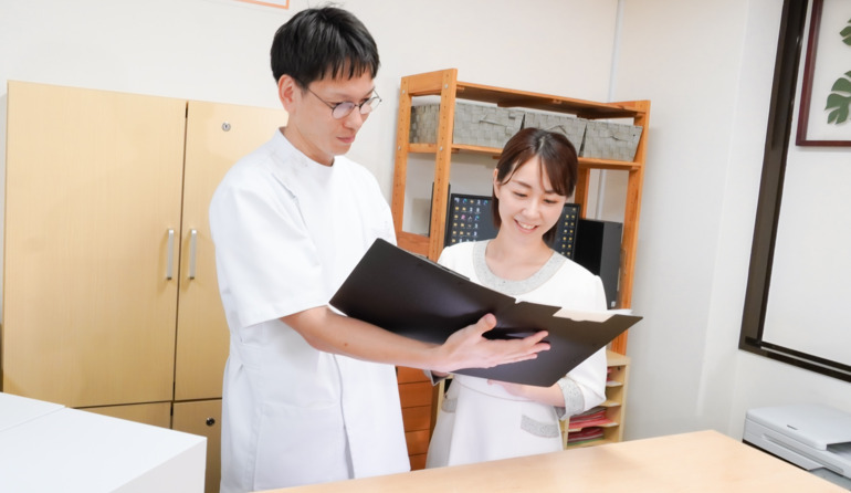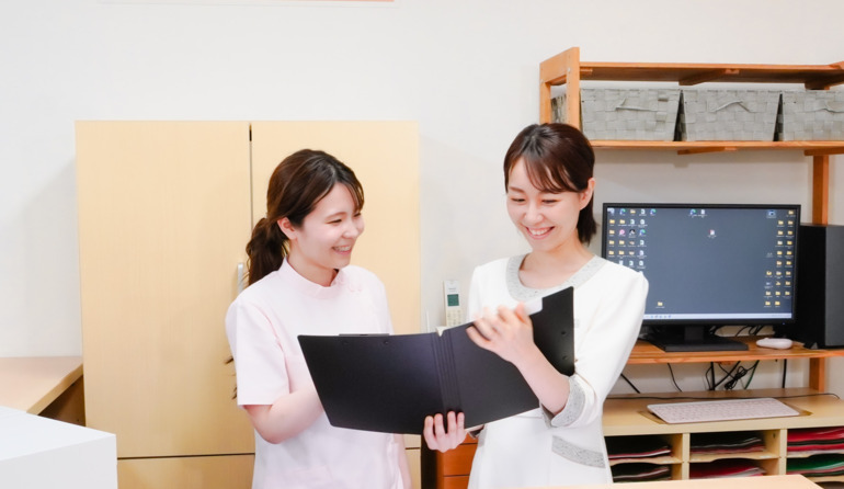 先生の指示で患者様対応や夜の忙しい時間の打ち合わせがあります 先生もお話し好きな方が多いので笑顔が多い職場です。