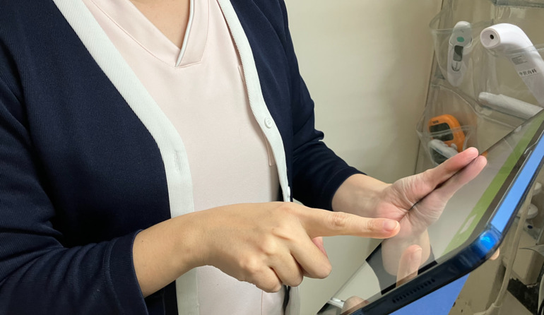 制服に着替え、ipadで打刻します。