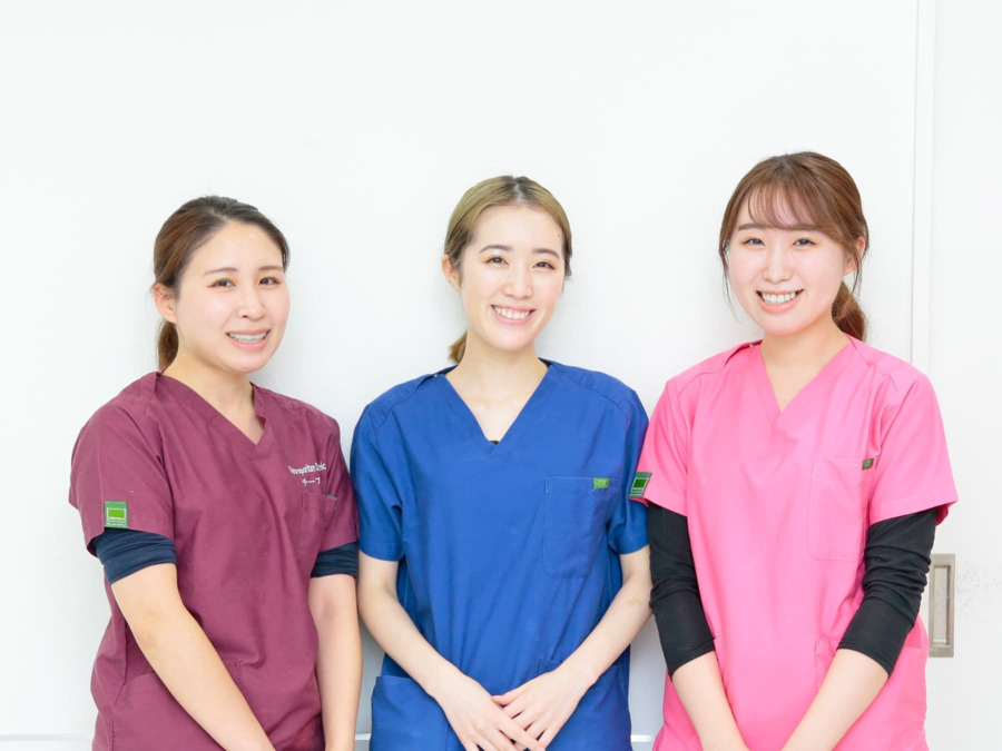 【未経験の方お待ちしております!】 当院では、経験の有無よりも、スタッフ同士の輪を大切にできる方と働きたいと考えています。未経験でも、周りが支えていくのでご安心ください。 実際に患者さんを対応していただくまでに、自信がつくまで、何度でも練習にお付き合いします。何度でもご質問下さい。 意欲的にスタッフと接すれば、知識や技術は自然と身についていきます。 面接には、固くならずリラックスしてお越しください。また、お越しいただいた際、当院の雰囲気をより感じていただくために、院内の見学や、スタッフとお話していただく事をお勧めしております。ご希望でしたらご案内致します。