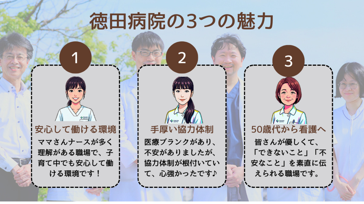 横浜市鶴見区にある徳田病院は、昭和49年から腎センターを併設し、人工透析を診療の中心に据えておりますが、一般内科の患者さんも数多く来院されます。 近年、透析をされる患者さんの数は増加をたどり、国を挙げての生活習慣病への取組みから、透析を行う前の管理が重要だと再認識されています。 徳田病院では、予防指導を行うとともに長期入院での全身的管理から腎疾患の患者さんがもつ基礎疾患としての糖尿病、高血圧、高脂血症を、更には脳卒中の既往や心臓病の合併症に対応しております。募集内容