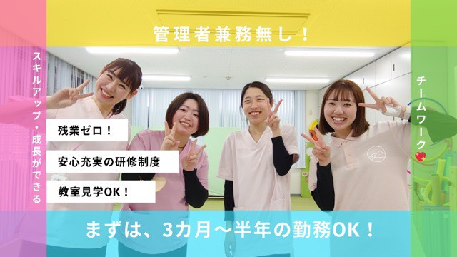 ・新規オープンのため、「みんなで一緒に創り上げる」ことを大事にしています。 運営や療育に関するマニュアルも完備されているので、安心してスタートしていただけます。 本部責任者も一緒に運営や営業に当たりますので、 気軽に何でも相談できる環境です。
