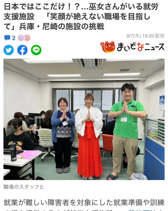 当事業所は、就労継続支援A型・B型(多機能型)として運営しており、現在18名の利用者様が在籍しております!