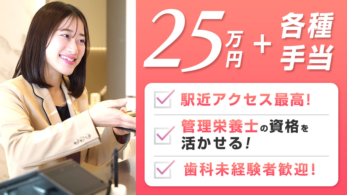 - 〈 入職後の流れ 〉 マニュアルを完備していますので研修バッチリです! 先輩と⼀緒に業務を⾏いながら、少しずつ仕事を覚えていきましょう。 全員であなたの成⻑をバックアップしますので安⼼してチャレンジしてください。 現在当院では、20代、30代の⼥性スタッフが多数活躍中! 完全週休2⽇制で、残業も⽉平均20時間です。(1日1時間程度を想定) 仕事とプライベートの両立もでき、プライベートの時間もしっかり確保できます! 管理栄養士としての仕事内容は、周術期の栄養指導、乳幼児の離乳食指導、う蝕予防の食生活指導、口腔機能低下症の検査・指導、予防メインテナンス時の定期的な栄養・食事管理などです。 具体的には以下のとおりです。 ① 受付業務 ② 離乳食教室 ・保護者への食育指導、資料作成、マタニティ向けの個別集団指導 ③ オーラフフレイル ・高齢者への機能指導、入れ歯になった方の食生活指導、家族への食生活指導 ④ 訪問 ・訪問先への食生活指導 ⑤ 食事指導 ・虫歯リスクの高い小児向け食事指導、OMT口腔機能と食習慣改善、食育イベント企画、食生活アンケートからの栄養指導 求める人材: ・管理栄養士として栄養指導の経験がある方 必須条件スキルとしてWord・Excel使える方(初歩的なレベルで結構です) 和気あいあいとした職場ですが、スタッフそれぞれが高いレベルを目指して仕事に励んでいます。成長することを実感できる職場なので、仕事に一生懸命な方大歓迎! 「全身にも貢献する医科歯科連携」 「体の基本となる食と栄養」 管理栄養士として患者さんの口腔内だけでなく、全身を守るため 「食」という観点から関わっていただくお仕事です。 歯科助手業務と管理栄養士としてのお仕事を兼任していただきます。 もちろん歯科未経験でも大丈夫です!