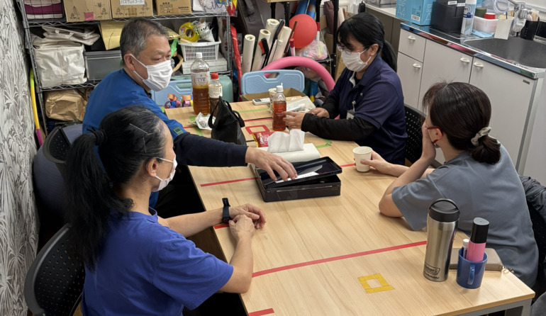 私自身は柔道整復師の資格を持って業務に当たっていますが、当法人のリハビリチームの一員として理学療法士や作業療法士の資格を持つスタッフと話す機会も多く、機能訓練指導員として介護の現場でのトータル的な能力が身についていると感じています。施術を実施していくうえで、まずそれ自体を受け入れてもらえるようなコミュニケーション能力などはまさにそれに当たるかもしれません。