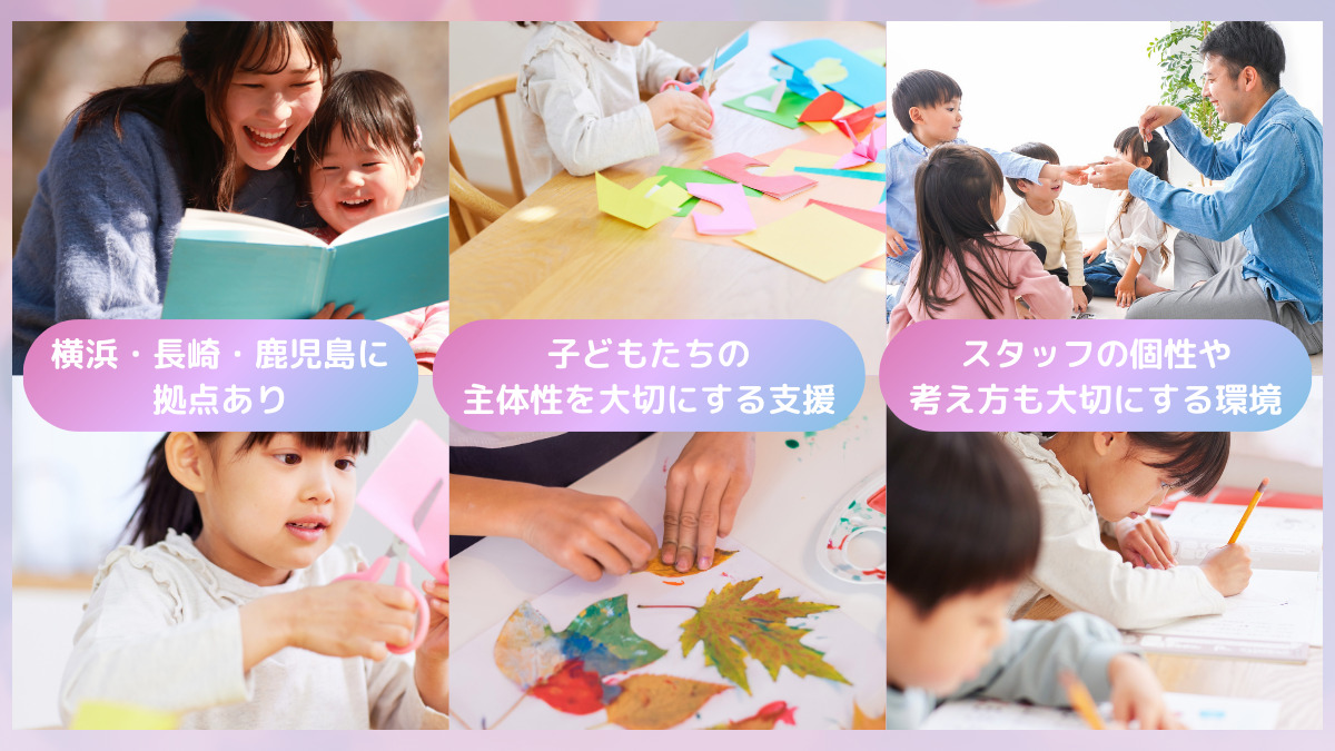 横浜・長崎・鹿児島に拠点を持つ児童発達支援・放課後等デイサービスです。