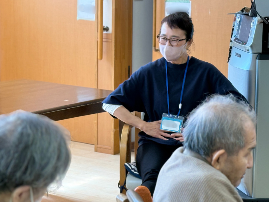・生活に密着した機能訓練(ADL維持・向上) ・レクリエーション参加を通じた自然な動作訓練 ・散歩・外出支援を兼ねた歩行訓練 ・日常生活の中での変化を捉える評価(生活の延長線上での観察) ・介護士へのケアアドバイス、ケア方法の改善提案 ・在宅訪問での住環境評価・動線改善の提案 ・地域向け予防リハイベント(月1回)や予防サロンの企画・運営 ・小規模多機能(7割)・グループホーム(3割)でのリハビリ支援
