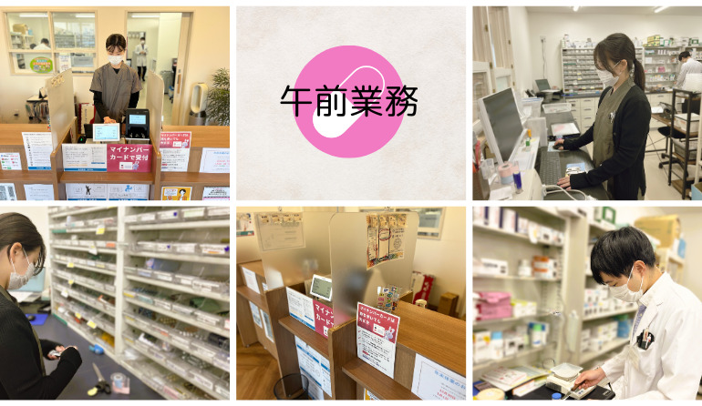 薬局内の清掃、パソコン・機器の起動作業 患者様が来局される前準備 ※出勤時間は店舗により異なります。