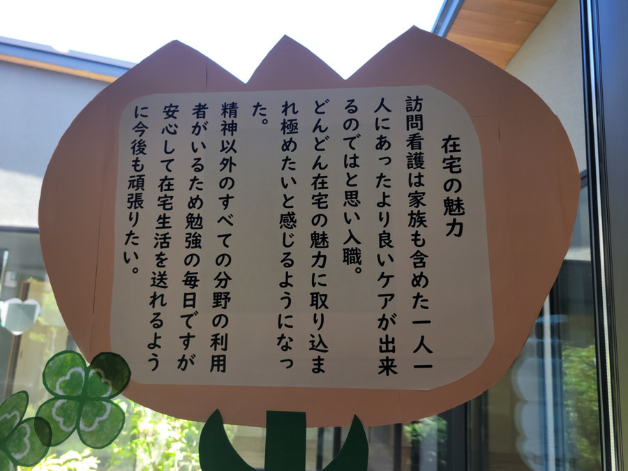 - 当事業所の魅力は、スタッフがお互いの意見を活かし、快適な勤務環境を作っている風を通しのよさです。