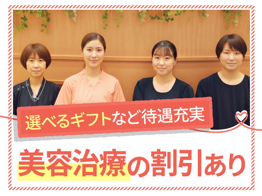*昇給年1回 *交通費全額支給 *制服貸与 *法人内の医療機関での保険診療の補助 *美容治療の割引 *年1回選べるギフトプレゼント (ユニクロやアマゾン2万円ギフトカードや各種テーマパーク利用券など)