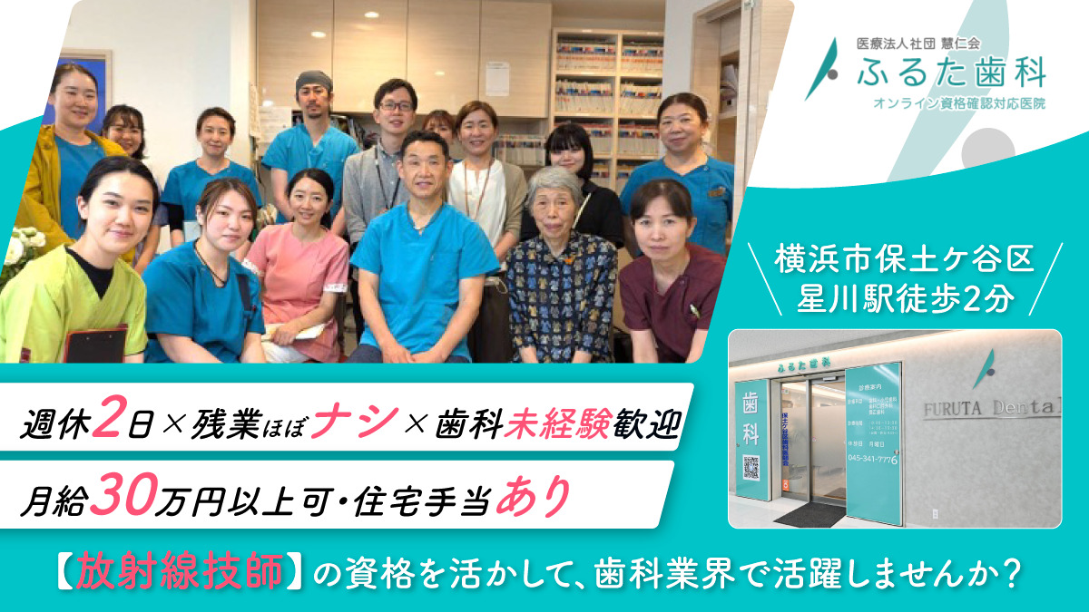 <横浜市保土ケ谷区・星川駅徒歩2分>月給30万円可・住宅手当あり★週休2日×残業ほぼナシ★放射線技師の資格を活かして、歯科医院で活躍しませんか?