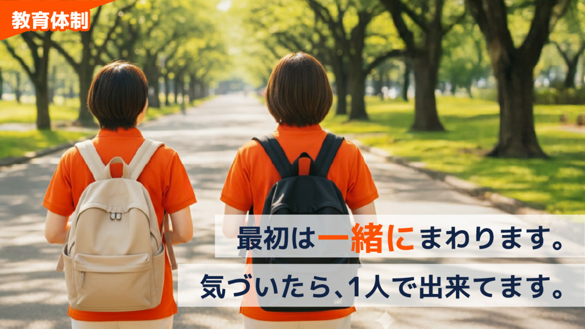 最初は、先輩といっしょに地域を回ります。 何回か同行すると、仕事の流れはだいたい見えてきます。 「どうやって地域とつながっているのか」 それを、見て、感じてください。 この仕事は、テクニックよりも、あなたの人柄が大切。 これまでのコミュニケーションの積み重ねが、そのまま活きます。 もちろん、わからないことは、いつでも聞ける環境です。 ひとりで回れるようになるまで、担当スタッフがしっかりサポートします。 ひとり立ちしたあとも、 困ったときはチャットですぐに相談できます。 安心して、ゆっくり慣れていってください。