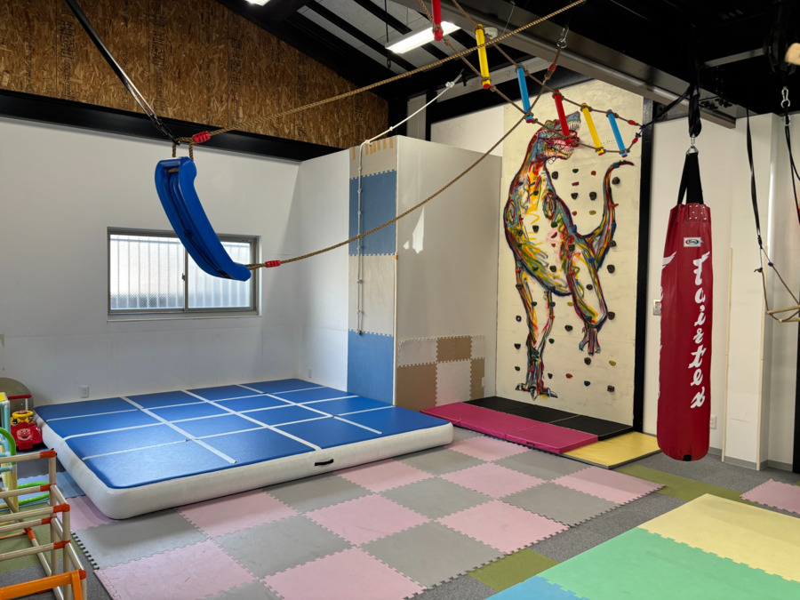 広々とした教室で、様々なスイング遊具を用いて、子どもたちが楽しみながら運動遊びを通して、運動力と脳機能を高めるための支援に力を入れています。